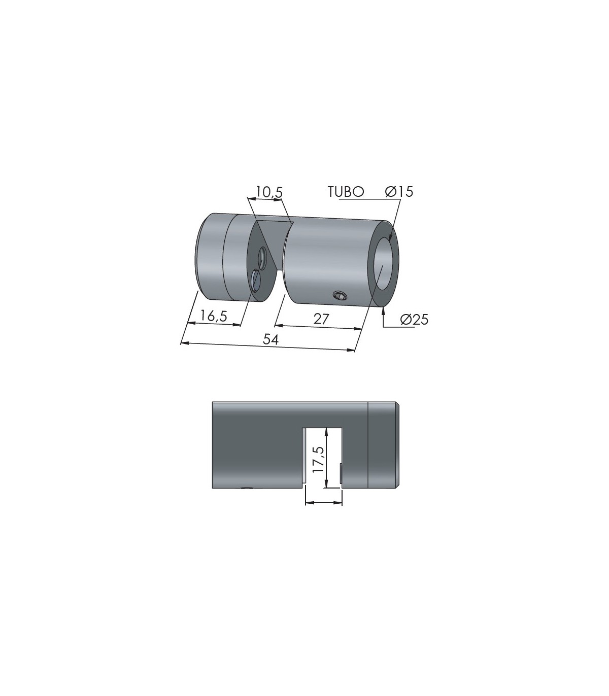 Extremo a vidrio en horizontal para tubo de Ø15.