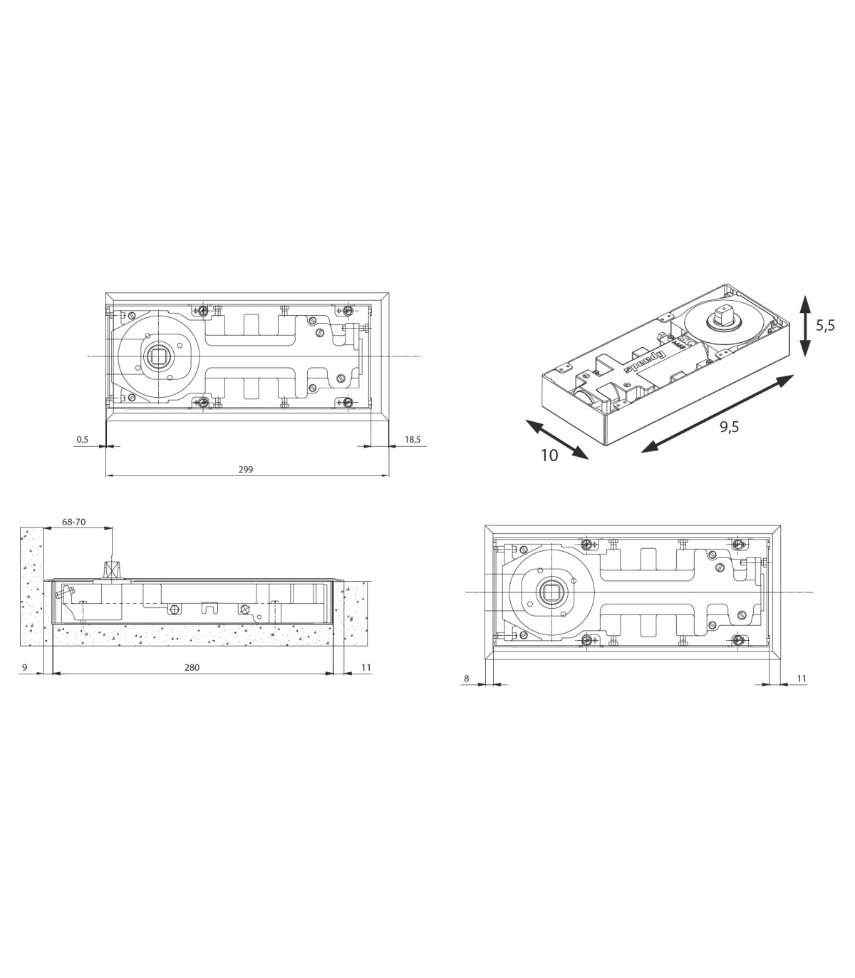 Apertura total 120º Bloqueo a 90º (Sin retención bajo pedido)