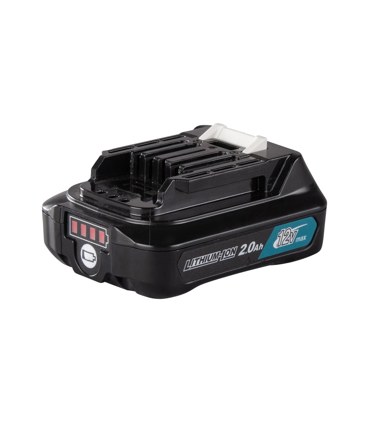 Batería de iones de litio de 2, 0 Ah, compacta y ligera, con indicador de nivel de carga.