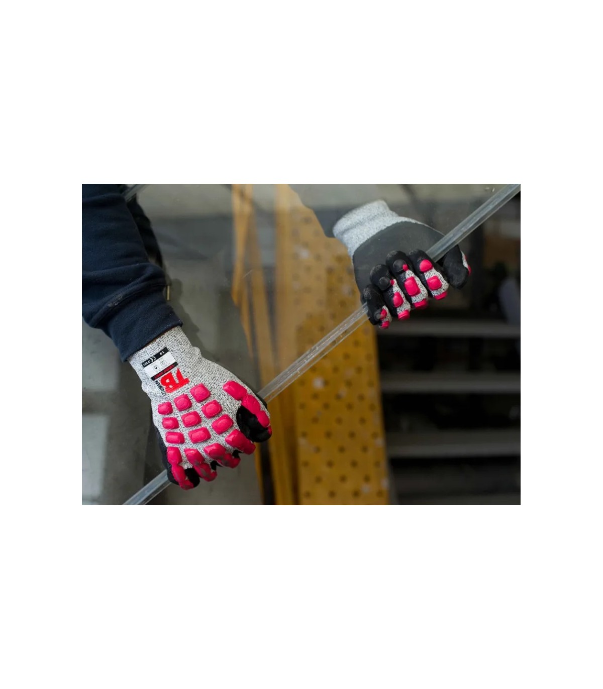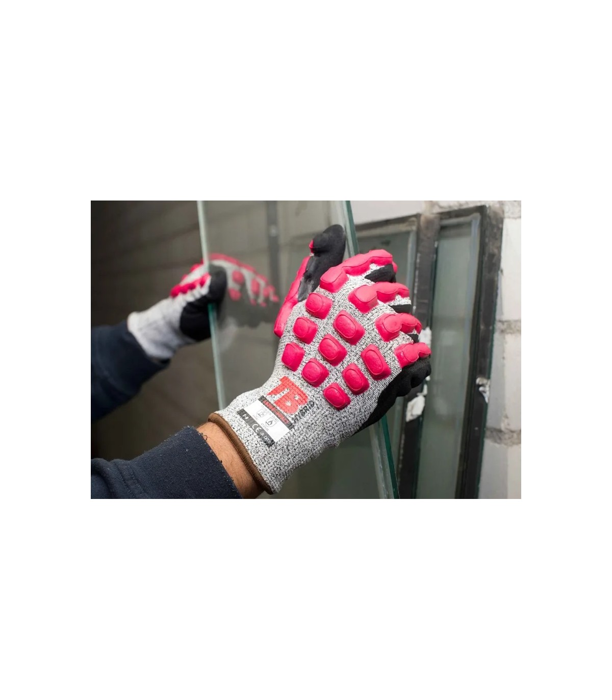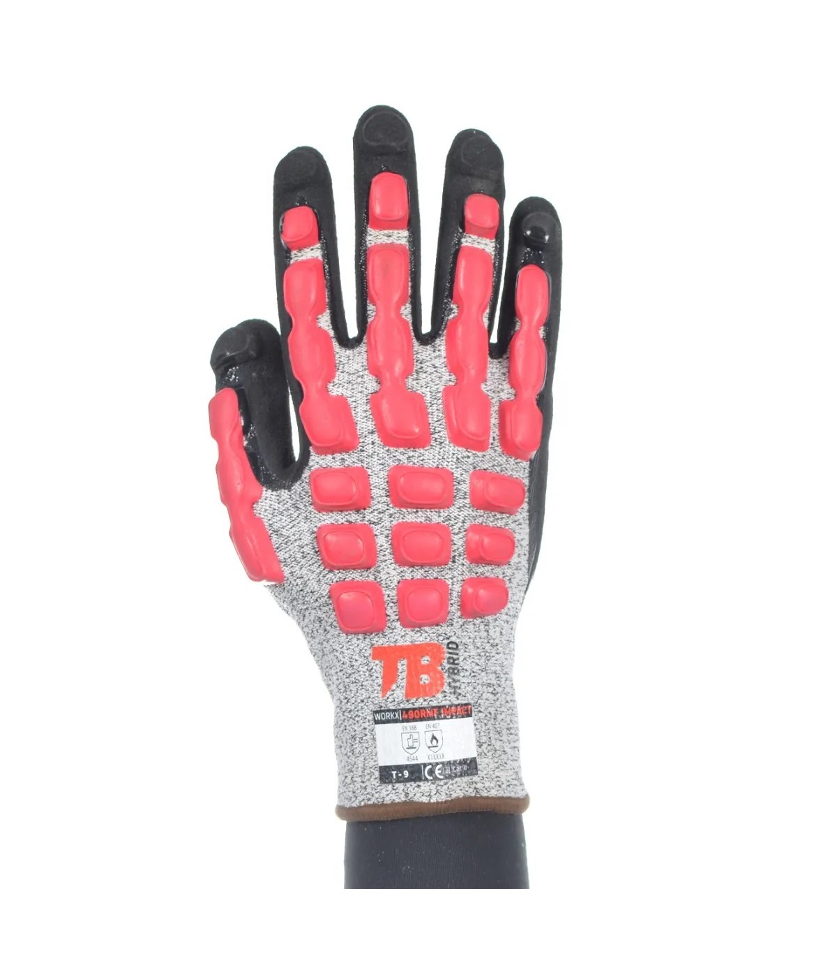 Con látex anti-impacto en dorso inyectado que cubre la mano ante posibles golpes sobre el dorso.