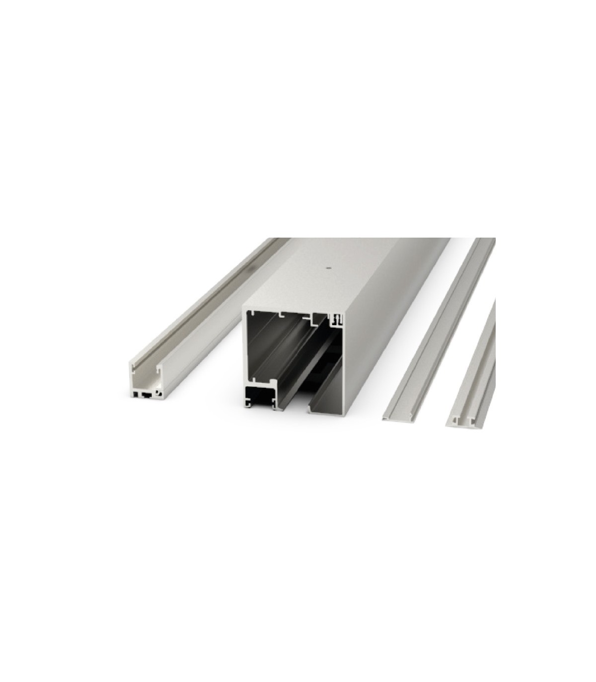 Juego de perfiles del sistema ROLLGLASS+250 para vidrio de 12mm y hasta 250kg de peso.