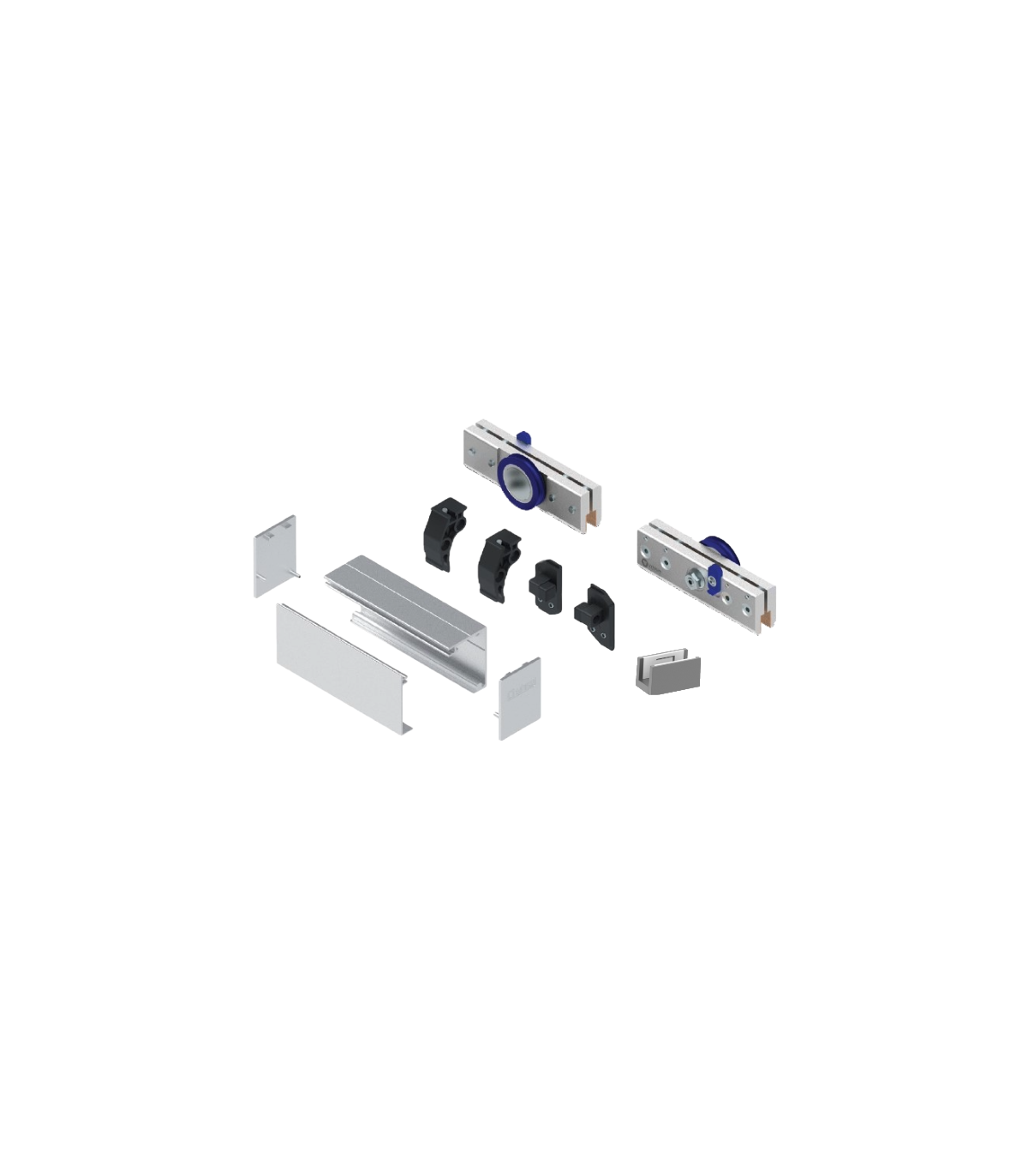 Kit completo del sistema corredero VT50 para 1 sola puerta de vidrio 8/10mm y peso máximo 50kg.